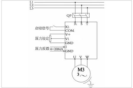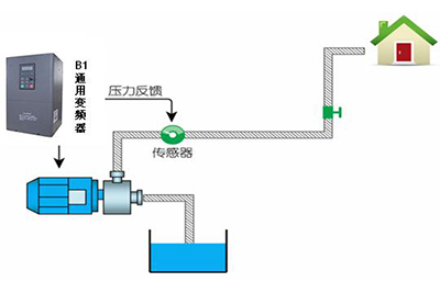 压力反馈:压力传感器检测管道压力反馈给变频器做